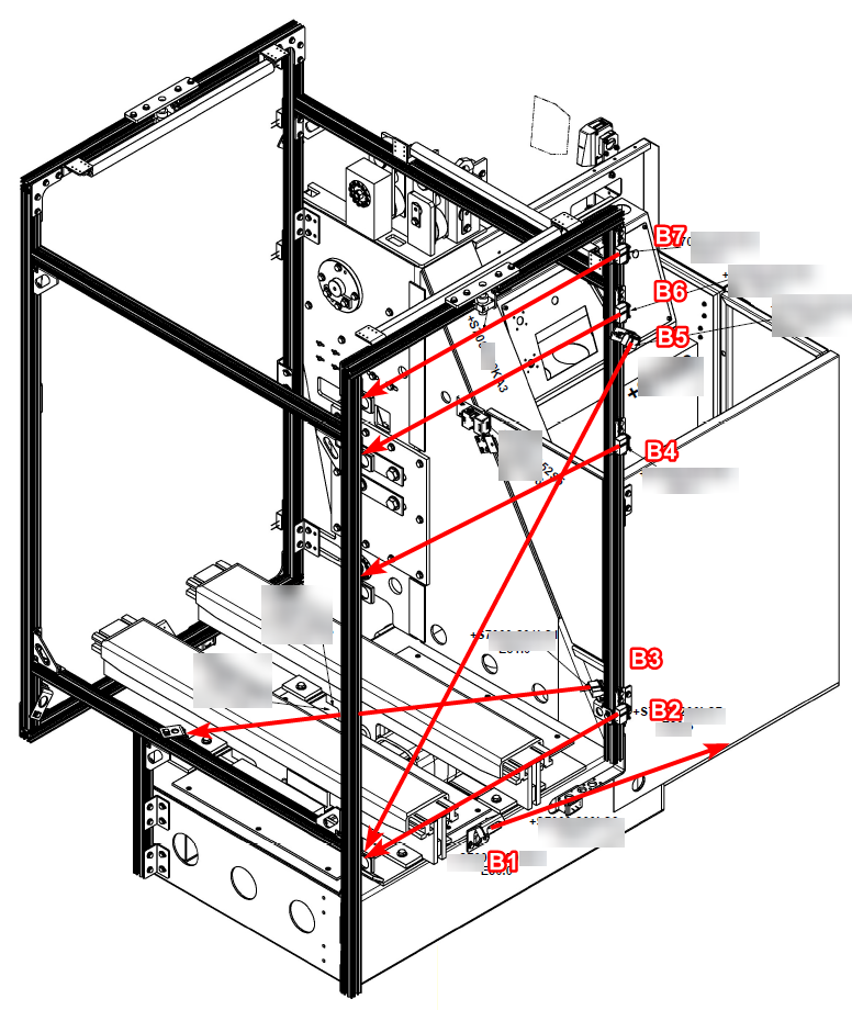 B4/6/7 - Sensors Left/Right to check the height class of the pallet. Sometimes, not all rows of a rack allow for the same height of load, because the customer knows that a certain percentage of their pallets will at maximum be a certain height one or height two or height three. If they make the rows of the racks less high, they can fit more rows into the same height of the total rack. But we usually check the pallet once we load it from the conveyors onto the crane to make sure the height class the pallet has according to the data we get from the warehouse system matches what we measure. If they do not match, something might be wrong. And we have to make sure we do not try to push a pallet that is too high into a rack row that is not high enough. If the warehouse system tells us to put a pallet into a row that is not of the correct size, something else might have gone wrong.